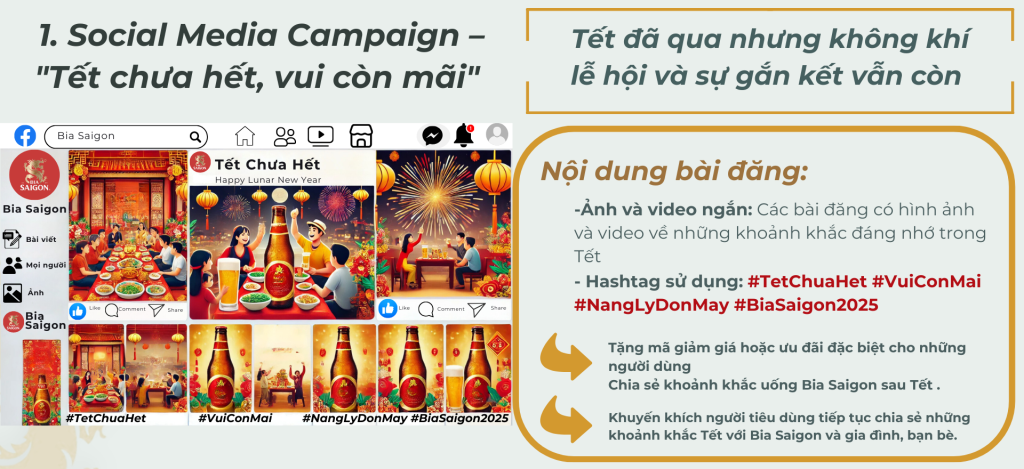 Là đội ngũ Marketing phụ trách chiến dịch Bia Saigon cho Tết Ất Tỵ 2025, SVA cần xác định các hoạt động nào sẽ được triển khai nhằm tối ưu hiệu quả của chiến dịch trong bối cảnh công ty đưa ra những mục tiêu trên. Đưa ra lý do giải thích cho phương án của mình, và chỉ rõ các hoạt động quan trọng mà bạn sẽ giữ lại để đảm bảo mục tiêu của chiến dịch được thực hiện thành công.