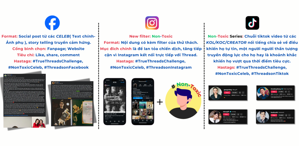 Kêu gọi các nhân vật nổi tiếng tham gia chia sẻ câu chuyện chân thật, truyền cảm hứng qua hashtag #TrueThreadsChallenge.